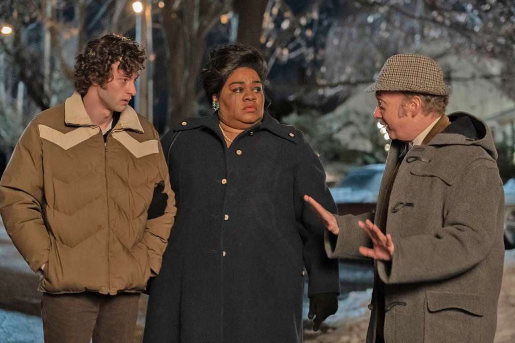 Paul Hunham (Paul Giamatti) is a disliked history teacher at prep boarding school Barton Academy. With no family or friends to go to over Christmas break, Paul stays behind to supervise the students who are unable to journey home. At the beginning there are five boys, but then only one remains – the smart but troublemaking Angus (Dominic Sessa) who is always on the brink of getting expelled. Together with head cook Mary Lamb (Da’Vine Joy Randolph), who is going through the loss of her son, they form an unlikely bond.